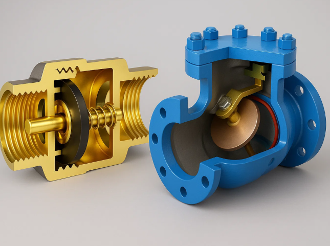 Когда давление падает или возникает обратное течение, ситуация меняется: пружина выталкивает затвор назад, и тот перекрывает седло. Обратный ток становится невозможен. Всё происходит автоматически, без участия пользователя — именно поэтому обратный клапан называют механизмом «одностороннего действия».