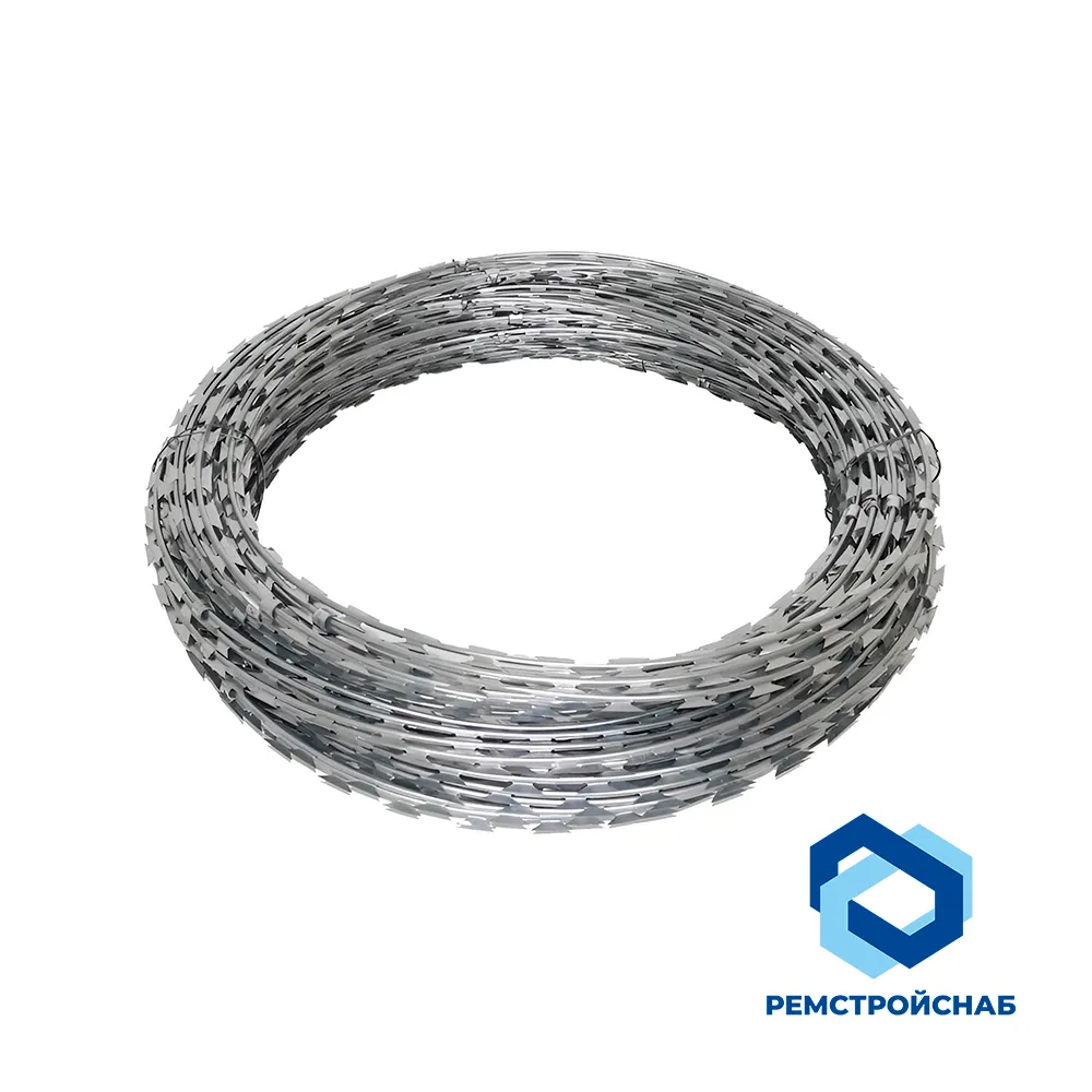 Армированная колючая лента — это специальный вид защитного металлического изделия, предназначенный для ограждений и повышения безопасности объектов. Лента представляет собой стальную полосу с острыми выступами, усиленную армирующими элементами, что обеспечивает высокую прочность и устойчивость к механическим воздействиям. Такой материал широко применяется для защиты периметров промышленных территорий, складов, военных объектов, частных территорий и охраняемых зон.