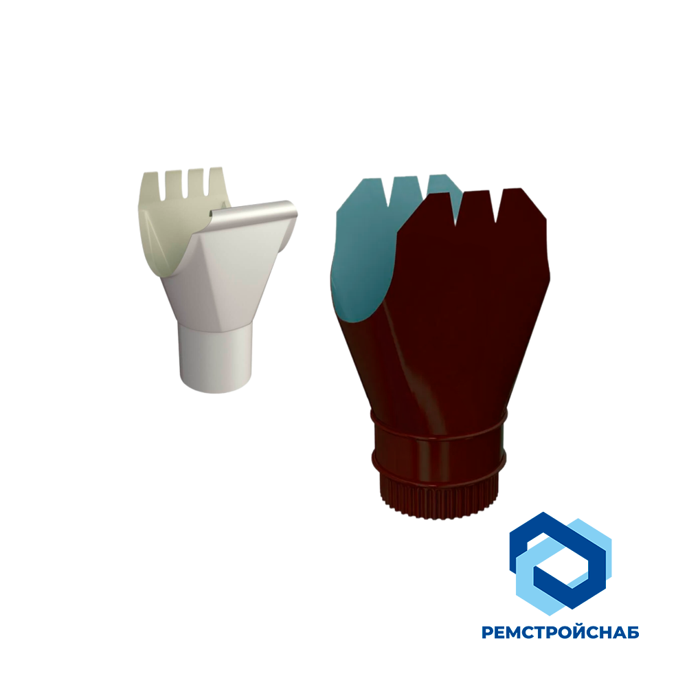 Воронка водосточная предназначена для приёма осадков с кровли и направления потока в систему вертикального отвода. Устанавливается в нижней точке водоотводящего жёлоба и соединяется с трубой стояка. Используется в составе наружных водосточных систем на объектах различного типа.